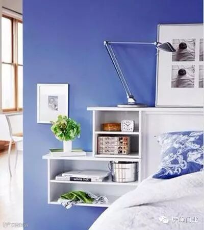 床头柜除了风格上的变换,其实也可以有很多花样。这种床头连柜体的设计完全不占用地面空间,完善的格局将你的枕边书、闹钟等物细分开来。