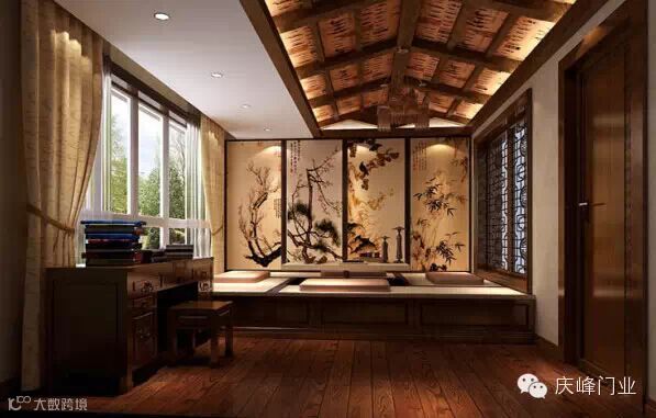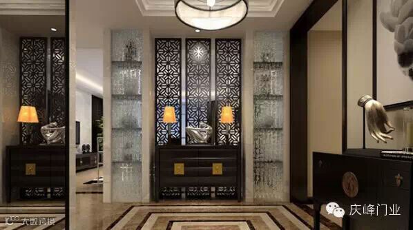 (2) 讲究空间的层次感,依据住宅使用人数和私密程度的不同,需要做出分隔的功能性空间,一般采用“哑口”或简约化的“博古架”来区分;在需要隔绝视线的地方,则使用中式的屏风或窗棂,通过这种新的分隔方式,单元式住宅就展现出中式家居的层次之美。