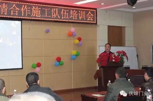培训会最后,庆峰公司总经理施志光肯定了在座每一位施工队伍成员认认真真做事,把顾客的事当自己的事办,全心全意为顾客考虑周到的施工理念,并携大家展望了庆峰公司的远景。