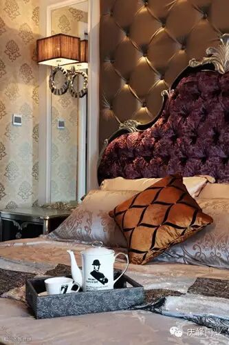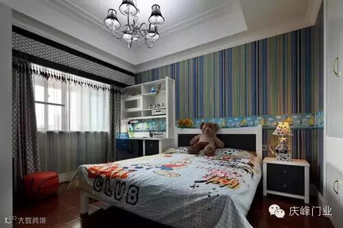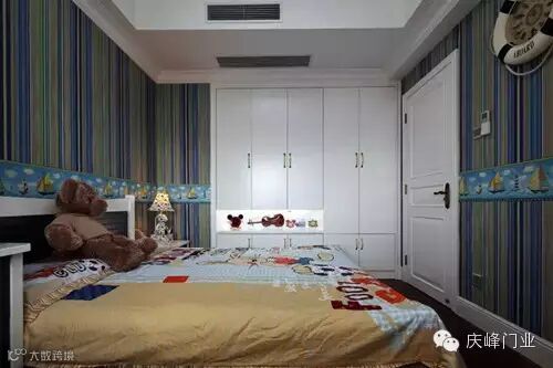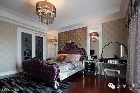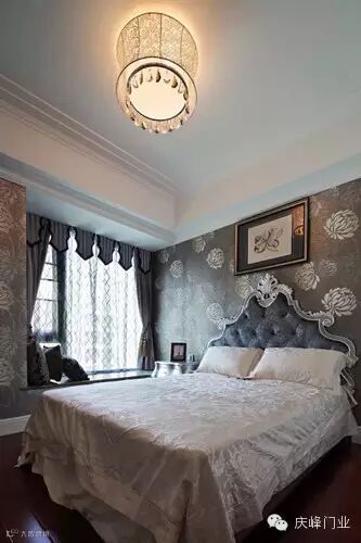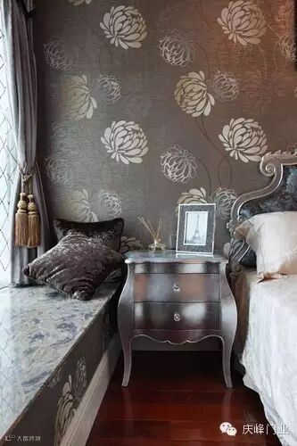 暖色带花墙纸,经典的欧式床具,纯白的衣柜。轻松敞亮的空间。