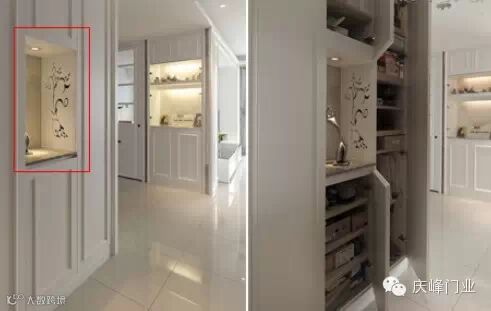 挖圆圈的方式或者是长方形的方式来做把手,暗把手除了方便开启门片,也有透气功能。通风的缝隙能减少柜内异味。