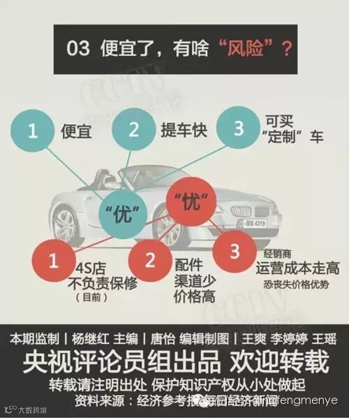 目前这个阶段,平行进口车经销商的售后维护、保险等环节还不是很完善,所以,要是您近期打算买平行进口车,也要承担一定风险!