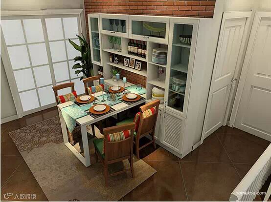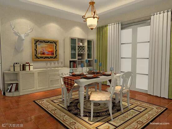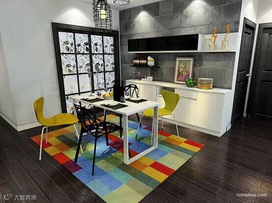 色彩的加入是为餐厅增加人气的入手点,配搭有心的餐具兼顾使用和装饰两种角色,时令花材更是为美感加分的必备武器。同时,你还可以在餐桌下添加地毯增强围合感。餐厅区不建议选用昂贵的羊毛地毯,短绒的化纤地毯打理起来更容易。
