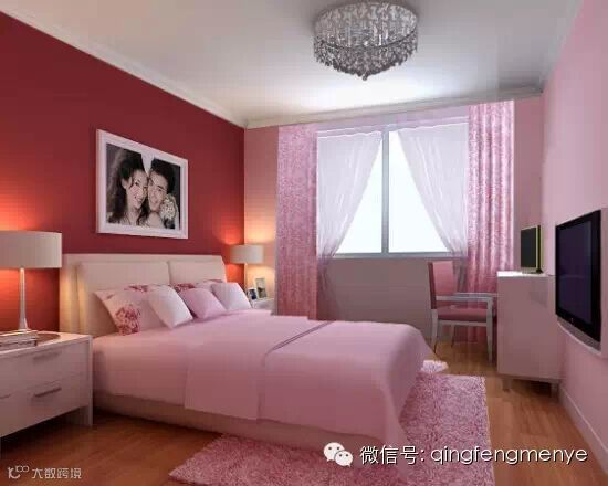 作为中国的婚房,红色是必不可少的装饰,大红色的背景墙搭配干净粉嫩衔接,仿佛在诉说着男女业主的炽热爱情。