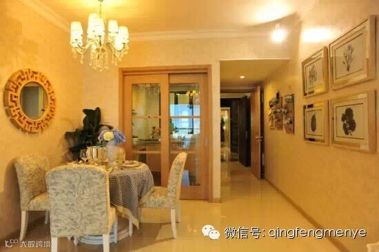 以黄色调表达田园丰收的感受,柔柔的白色灯光暖融融的从后面倾洒下来,一派悠闲,仿佛置身在自然的田园中享受着来自月光的滋润。陶醉在自然风格的家居中。素雅小碎花椅套装饰的椅子,让房间纯净之中透着一丝温馨。