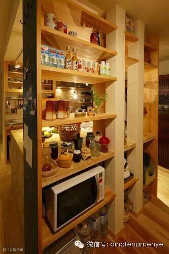 为了方便下厨,我们采用了这种置物架,省去了一般收纳柜开门关门的麻烦,同时摆放的东西也更一目了然。