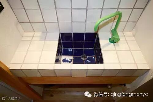 蓝白色的瓷砖上画有可爱的小鲸鱼,清新淡雅中带点俏皮可爱。