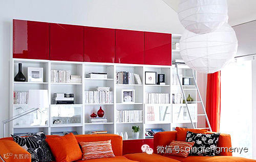如今,无论是厨房、浴室还是卧室,吊柜都无处不在,我们可以把这种想法延续到客厅,解决小户型客厅的收纳难题。