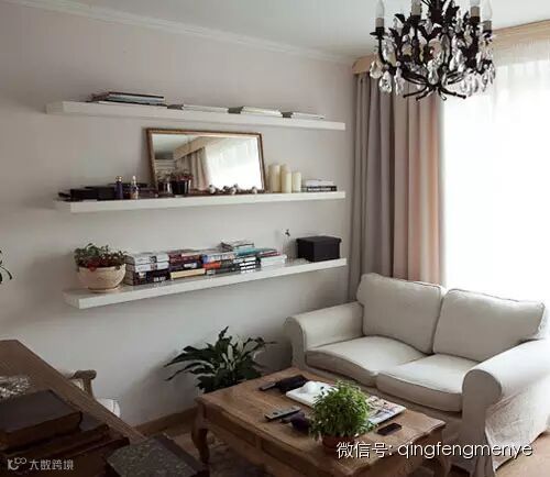 搁架是拓展小户型空间最简单的方法,多层搁架的设计可以成为家居收纳的好帮手。