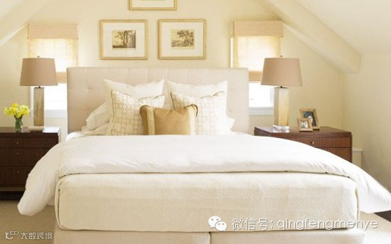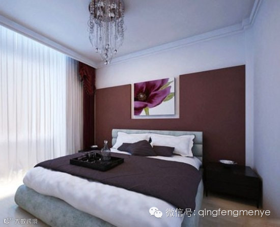 想要窗幔还要简洁,那就在床的上方简单勾勒出一个窗幔架吧,不需要太多装饰,简单四方图形即可,搭配与床头相仿色系帘子,一整夜都睡得很安稳!