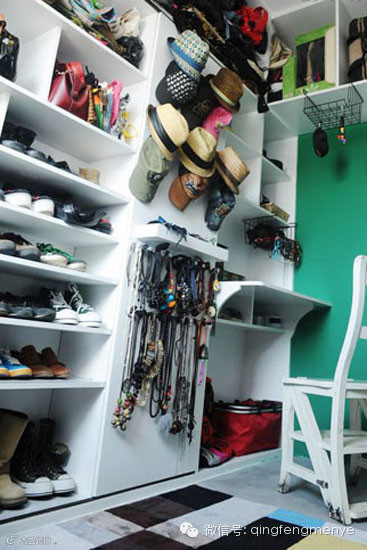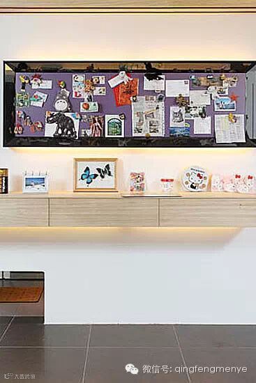 内嵌式墙体收纳将上层的墙面空间充分利用起来,几块木板搭起了简易的置物架,各类照片也找到了自己的归属地。
