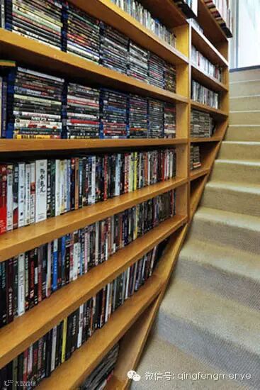 阶梯式收纳书架充分匹配楼梯倾斜的特点,将空间利用到极致。