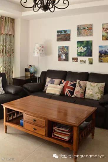 沙发上层空间除可以利用组合置物架之外,利用简单的隔板做收纳装饰也是不错的选择,漂亮小物被收拾得妥妥当当,也充分利用了墙面空间。