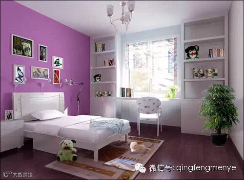 紫色也是女孩子最喜欢的颜色之一,同时搭配艳丽色彩的家具,让小公主的童年成长环境充满了大自然的气息。儿童房的设计同时要注意采光度,一般提倡在光线充足的环境。阳光普照下的小公主,才会更健康地成长。
