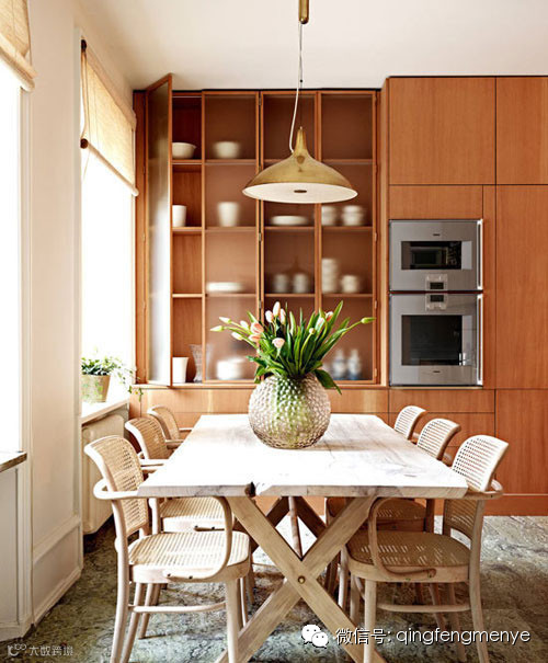 小编的话:冬日的餐桌上总是需要一些特腾腾的炖菜来暖暖胃暖暖手,当然软装窗帘能够很好的帮助调节室内色差感,硬装橱柜的暖色系本身就是一个暖意的元素,此时再来个亲昵的贴近式照明方案,暖眼更暖心。