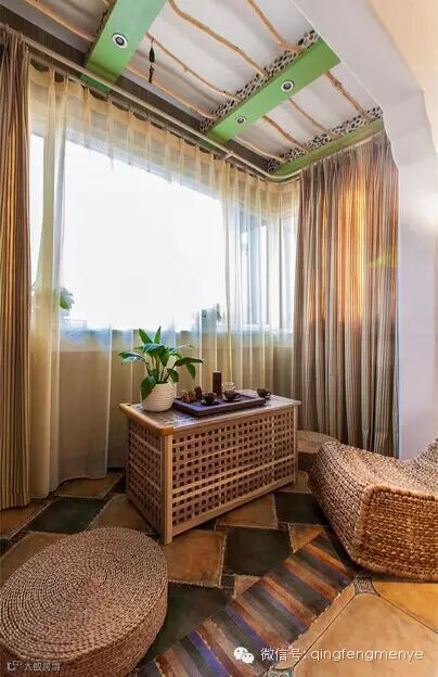 清新淡雅的飘窗,垫子上的红色便是明媚的亮点,午后的阳光如此美妙。