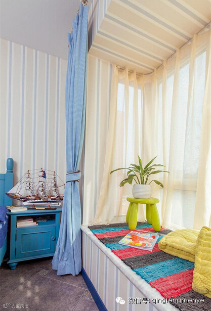 色调明亮的卧室配上阳光明媚的飘窗,床头的帆船透露了业主浓浓的海洋情意结。