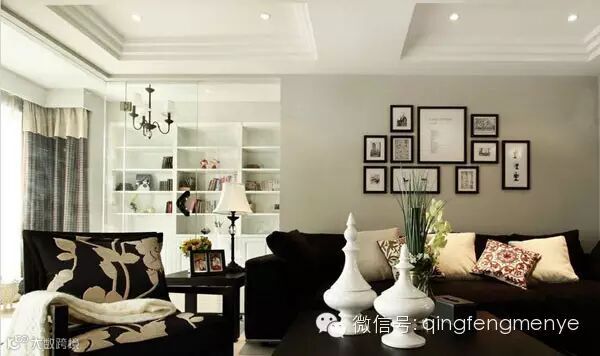 打通空间,整体吊顶 客厅空间局促,将原有非承重墙打通,形成一个整体空闲区域,空间整体吊顶,垂直空间拉伸,改变了本来局促的空间状况,也做到了“形离神不离”的效果。