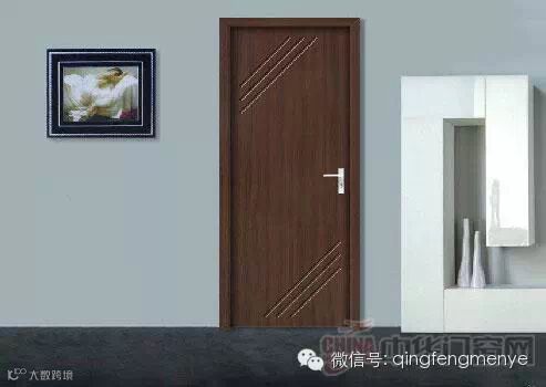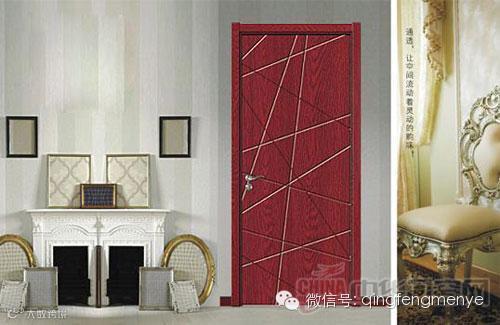 深色的房门由于本身颜色较重,所以不适合再做复杂的造型,否则安放在居室内有喧宾夺主之感,本款房门只在门体左上、右下角对应做简单三线条造型,就有了不错的整体效果,用于卧室、书房等空间显得稳重、大气。