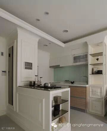 柜子层层叠叠不如将它们全都隐藏进墙壁里,嵌入式的隔间设计就是对厨房空间更加充分的利用,橱柜的拉篮设计也能为室内增加很多的隐藏空间,同时也避免了地面空间的占用。