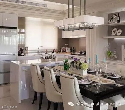 开放式的设计是打开厨房整体视觉空间的最好方法,去掉了厨房与客厅之间的一墙之隔,不仅拉近了人与人之间的距离,营造出一种温馨的家庭氛围,同时也给家中带来了一种通透的视觉环境,去除了墙壁的阻挡,进一步加大了纵深。