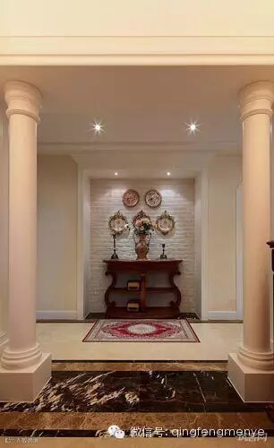 如果你家是别墅,这款门厅设计可以考虑,两边欧式柱的妆点让玄关空间有了一份欧式传统建筑的味道,各种样式的经典摆设和挂画是整体设计的点缀,从而为置身其中者带来一份优越享受,感悟生活的悠然自得。