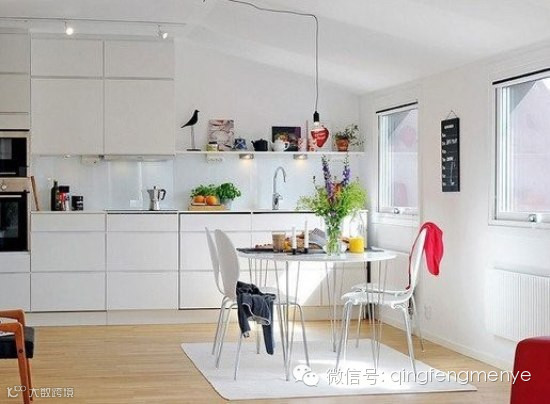 北欧风格讲究的是实用性与功能性,设计以人为本。在北欧风格的家里,看不到多余的修饰,有的只是干净的墙壁,版式家具,符合人体功能美学的桌椅,这些都在这个厨房中得到了很好的展示。