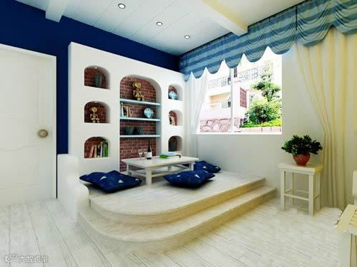 同样是地中海的榻榻米装修,还有很强的收纳功能哦!