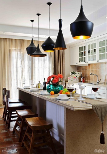 只这一盏独特的灯,便给这间厨房罩上了艺术氛围,艺术来源于生活却高于生活,大概就是这种味道吧。