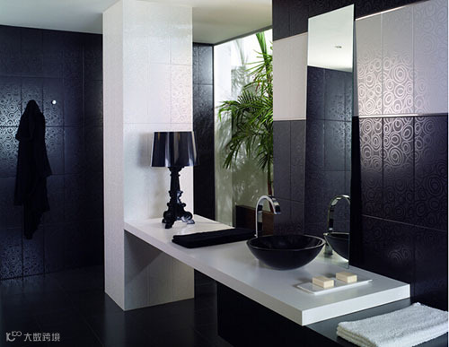 卫浴地砖适宜用深色,因为卫浴地板上容易留下水渍或碎发,深色地板耐脏。