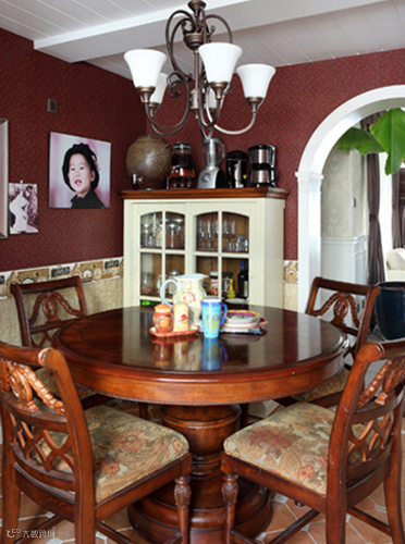 搭配tips:餐桌左边是双层的白色收纳柜,中间也摆放着一个实木餐边柜,这么多可利用的空间里面收纳的当然都是吃货们最爱的零食。