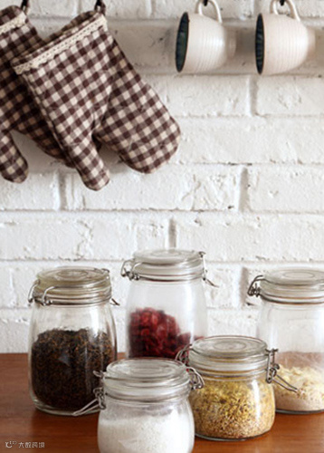 搭配tips:储物罐是收纳零碎食品最好的容器,一个个透明的储物罐放置不同颜色的食材,看起来也是色彩丰富,相当的赏心悦目。
