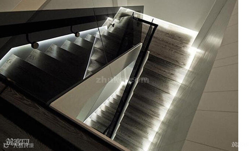 【别墅楼梯装修效果图】单看这简简单单的设计,似乎没有什么出彩的地方,但是淡雅的配色契合整个设计主题,光影的投射带来别致的视觉效果,反而有一种精致的美感。