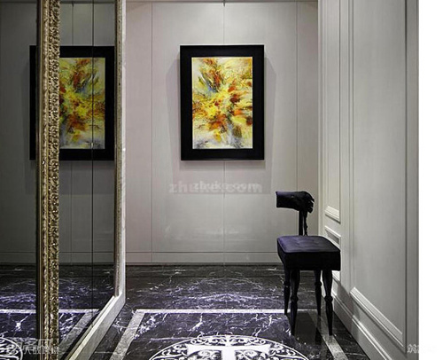 【别墅走廊装修效果图】在淡雅与大气之间寻找平衡点不是一件容易的事情,经典的配色是不会出错,大理石的花纹带来气派感。镜面的设计颇为别致,而印象派的壁画,则是想象力的舒展。
