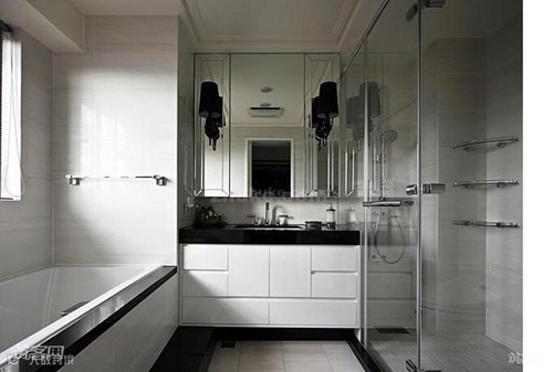 【别墅浴室装修效果图】玻璃材质的运用在视觉上拓宽了空间,明快大方的白色,是对淡雅主题的续写。以实用性取胜,布局合理,倒是改写了对“土豪”金光闪闪的印象。