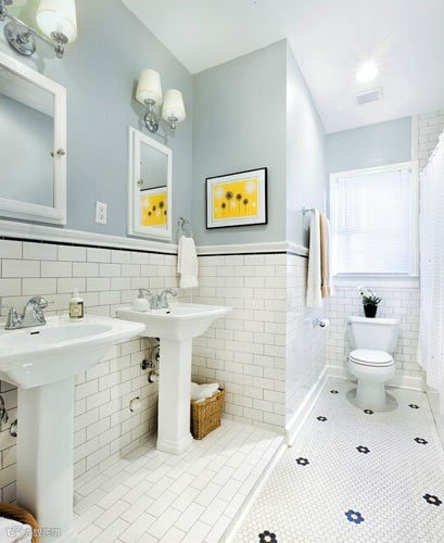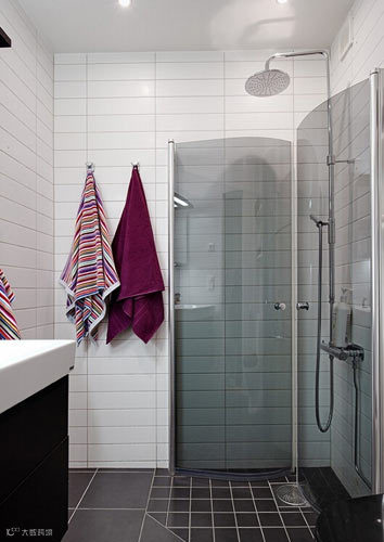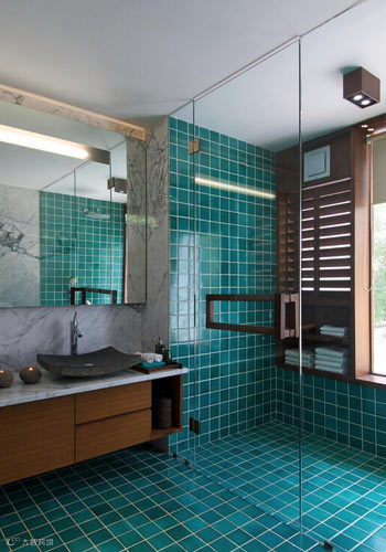 2、地面:在铺地砖之前,务必做好防水;在瓷砖铺设之后,要保证砖面有一个泄水坡度(一般以1%左右为宜),坡度朝向地漏;地面在铺设完瓷砖之后必须做闭水实验,时间至少要保证24小时;铺设地砖时要注意与墙砖通缝、对齐,保证整个卫浴间的整体感,以免在视觉上产生杂乱的印象。