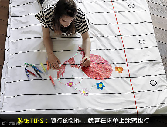 装饰TIPS:“我就是我”、“我的地盘我主做”……这些个90后的自我描述,都与这套床上用品十分搭调,能自由随行的就在上面画画写字,但有一个问题?能洗吗?太浪费了!