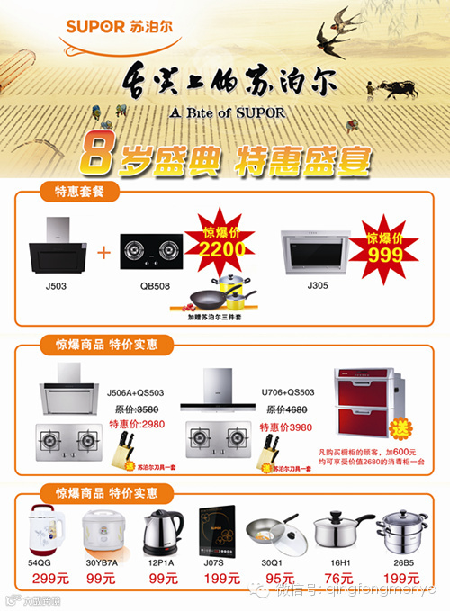 山西庆峰公司官微为迎接庆峰8岁生日,苏泊尔品牌特推出亲民优惠价来回馈大家,具体会有什么惊喜呢?想要知道,就随小编一起来到庆峰特惠盛宴之苏泊尔电器专场吧!
