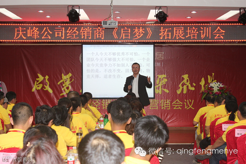 此次经销商会议历时三天,首先,第一天的会议内容主要是庆峰公司经销商《启梦》拓展培训,主讲人为汇聚培训首席讲师张宝雷老师。会上主要进行了破冰及团队展示环节。
