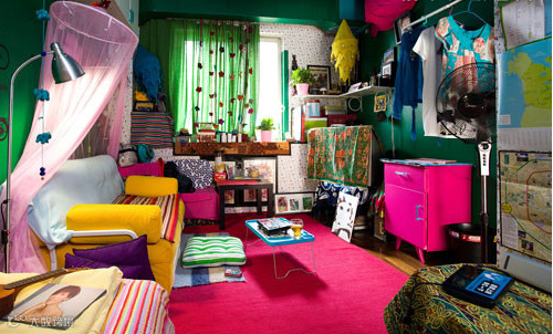 装饰TIPS:游牧民族般洒脱的帐篷与扎染面料,狂放热情的色彩搭配,让整个空间呈现嬉皮士精神。