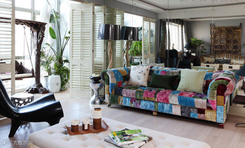 装饰TIPS:高贵的高背椅外形与华丽的拼接花色,让拼接和扎染免于草根俗套,走进品质之家。