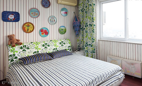 装饰TIPS:旅行带回来的民俗印花丝巾,不是常见的花卉图案,活泼的鱼形图案与童趣玩偶相互映衬,共同告别呆板卧室。