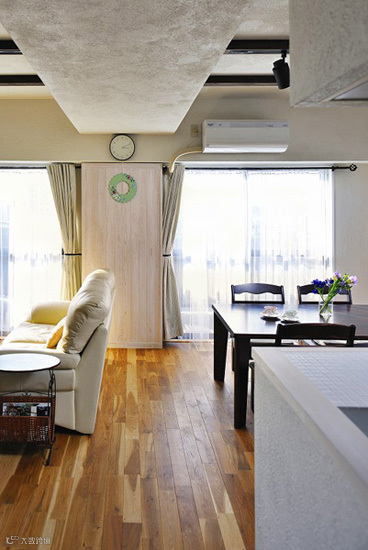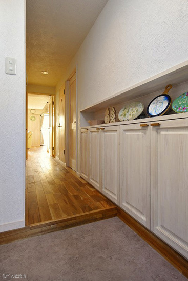 装饰Tips:白色的收纳柜,放置家中的大件杂物,实用至极。木质的手工装饰品,精美别致,引人眼球。玄关处的淡紫色地板,让这里顿时拥有了优雅好客的气氛。