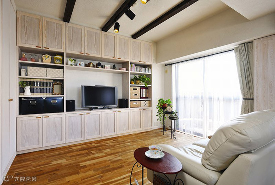 装饰Tips:具有大容量收纳功能的电视柜,可以放置家中闲置的杂物,让小家更显整齐。开放的分层式收纳架,摆放一些装饰品等,使得空间更富有情调。