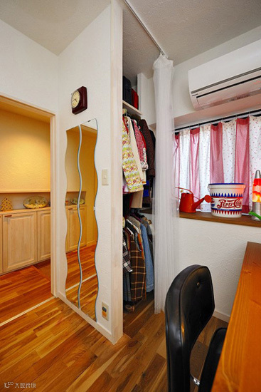 装饰Tips:波浪形的穿衣镜,不仅可以供主人整理穿戴,还显的柔美,端庄,落落而下,起到了装饰墙面的效果。步入式的衣橱,具有大容量的收纳功能。