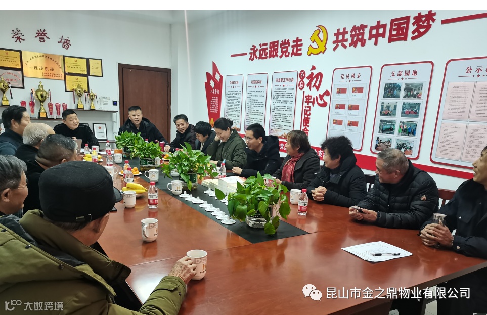 2021年12月29日,《许家村党总支、鑫茂社区党支部、金之鼎物业党支部——【三支】党群联合服务队成立会议》在昆山市金之鼎物业有限公司党支部会议室举行,金之鼎物业党支部书记陈峰主持该场会议。昆山市金之鼎物业有限公司总经理金建平周市镇退休老干部党总支书记陈炳权、周市镇退休老干部党支部书记魏春根、许家村党总支副书记石雪琴、鑫茂社区党支部书记顾冬菊出席了此次会议并发表了讲话。