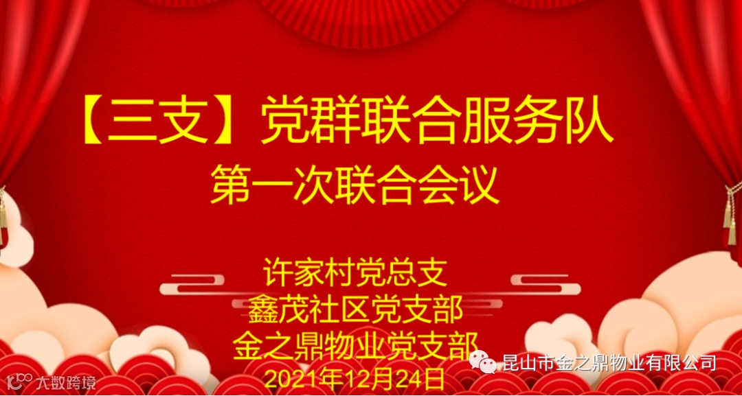 2021年12月24日,《许家村党总支、鑫茂社区党支部、金之鼎物业党支部——【三支】党群联合服务队第一次联合会议》在昆山市金之鼎物业有限公司党支部会议室举行。许家村党总支书记许建华、鑫茂社区党支部书记顾冬菊、金之鼎物业党支部书记陈峰、周市镇前党委委员陈炳权、周市镇前党委委员魏春根出席并共同主持了该会议。