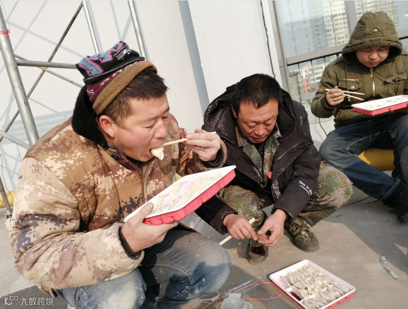 新年来临之际,工程上每位员工都还在争分夺秒的奋战着,相互配合加快施工效率,想在年末为自己的工作画上一个完美的句号,也让公司更好的完成对客户的承诺。今天是小年,北方的习俗是吃饺子。公司也为每一位员工准备了小年饺子。大家不拘小节席地而坐,互相交换着不同味道的饺子,不由得露出了暖心的笑容。大家你一言我一语的说笑着,却带着暖暖的幸福的感。“每逢佳节倍思亲”所有员工已经回家心切,但大家苦中作乐,表面平静,实际上非常着急项目的进度。我们一线人员们为了项目的完美落地,为了城市的美化,依然坚守在自己的岗位上。北方的冬天很冷,各位一线人员不畏严寒白天努力赶进度, 晚上继续加班。真的很感谢你们的付出,我们庆幸来到了君上这个大家庭,公司也为大家的存在而感到幸福。