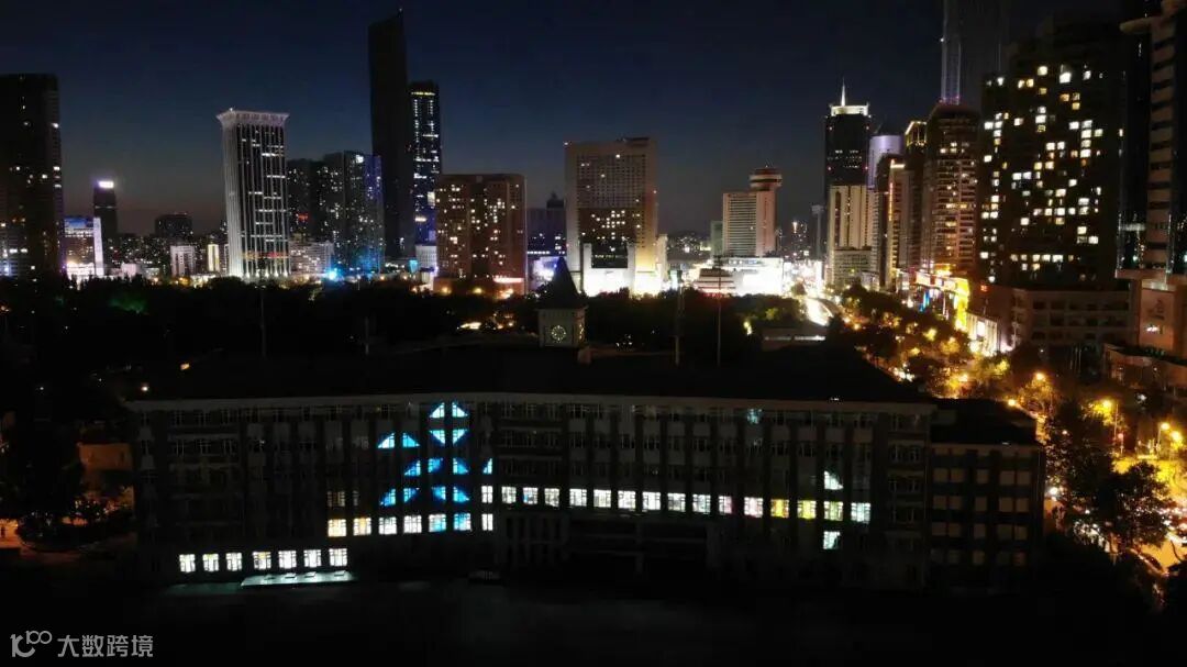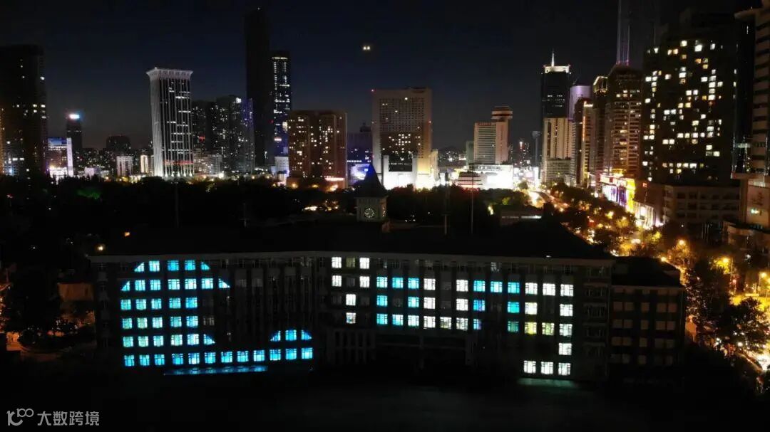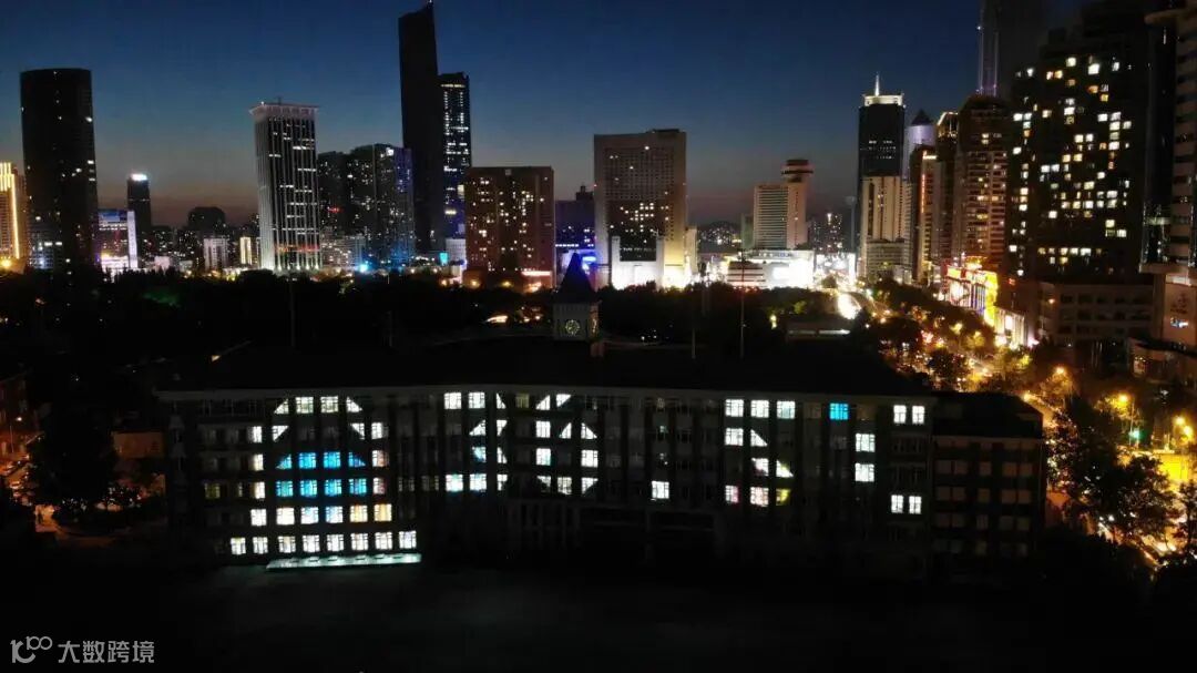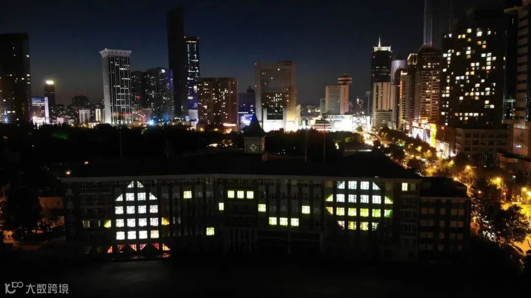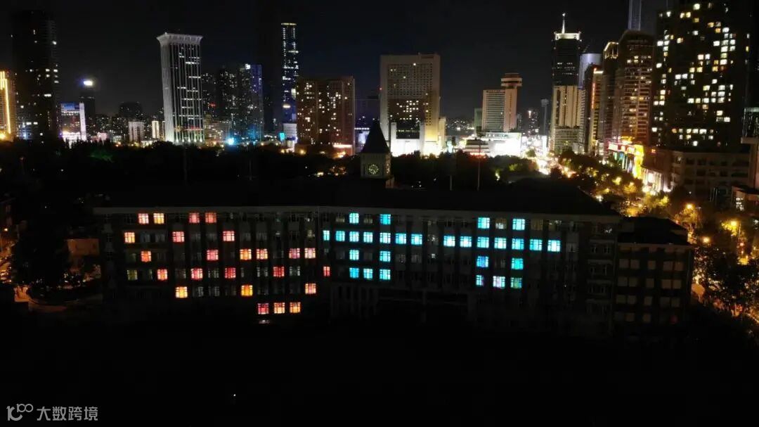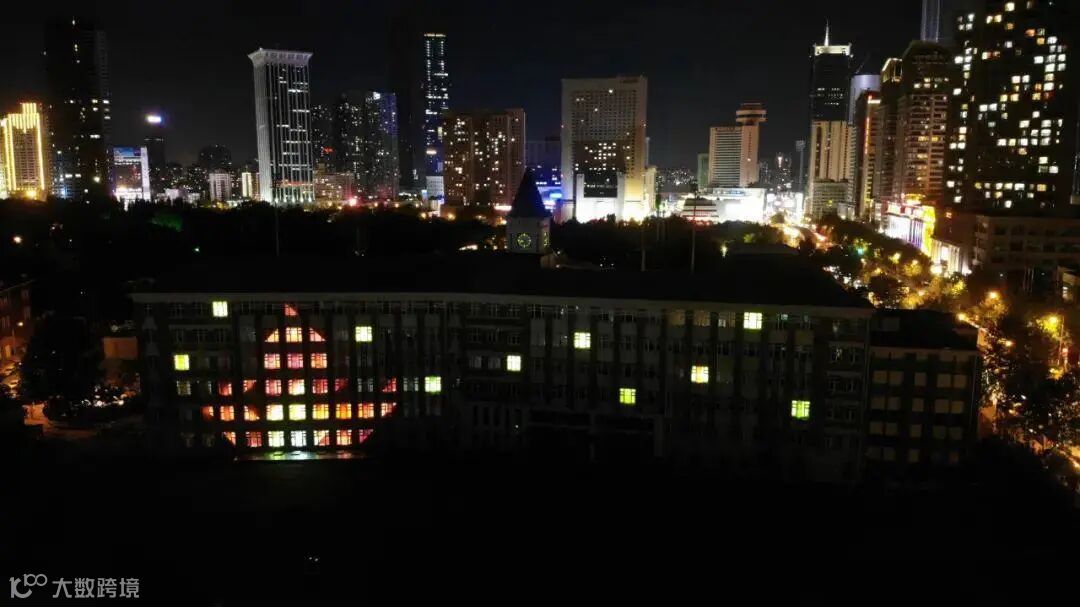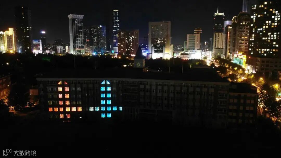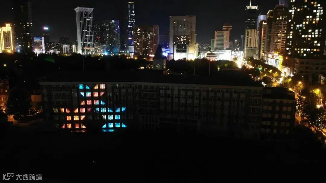 一场独特的灯光秀,为高考学子们加油,一幅幅图案在夜色的烘托下亮起……