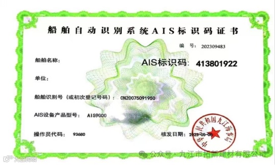 (船舶AIS识别码证书)
